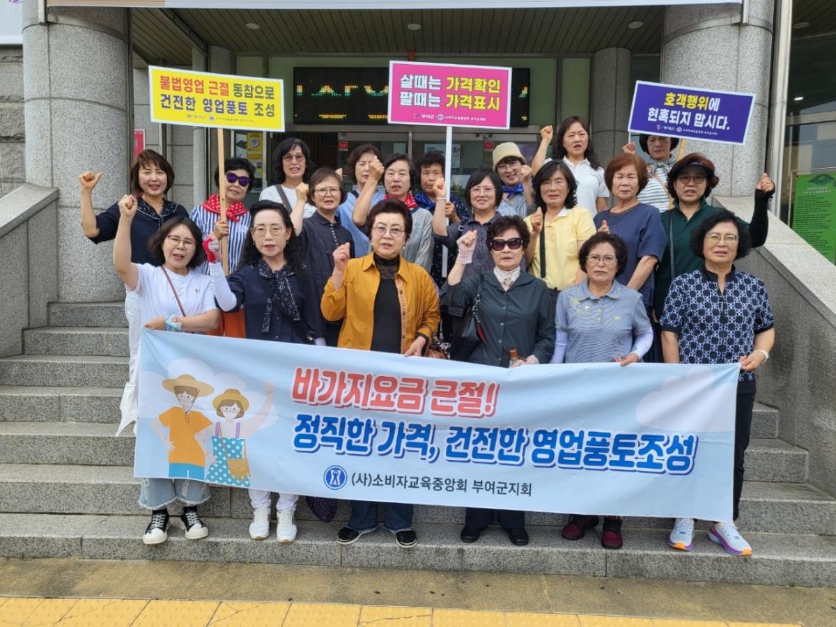 부여군지회(회장 이명순)에서도 6월 27일 연꽃축제를 준비하는 군청 번화가 일대에서 소비자단체 회원 30여명과